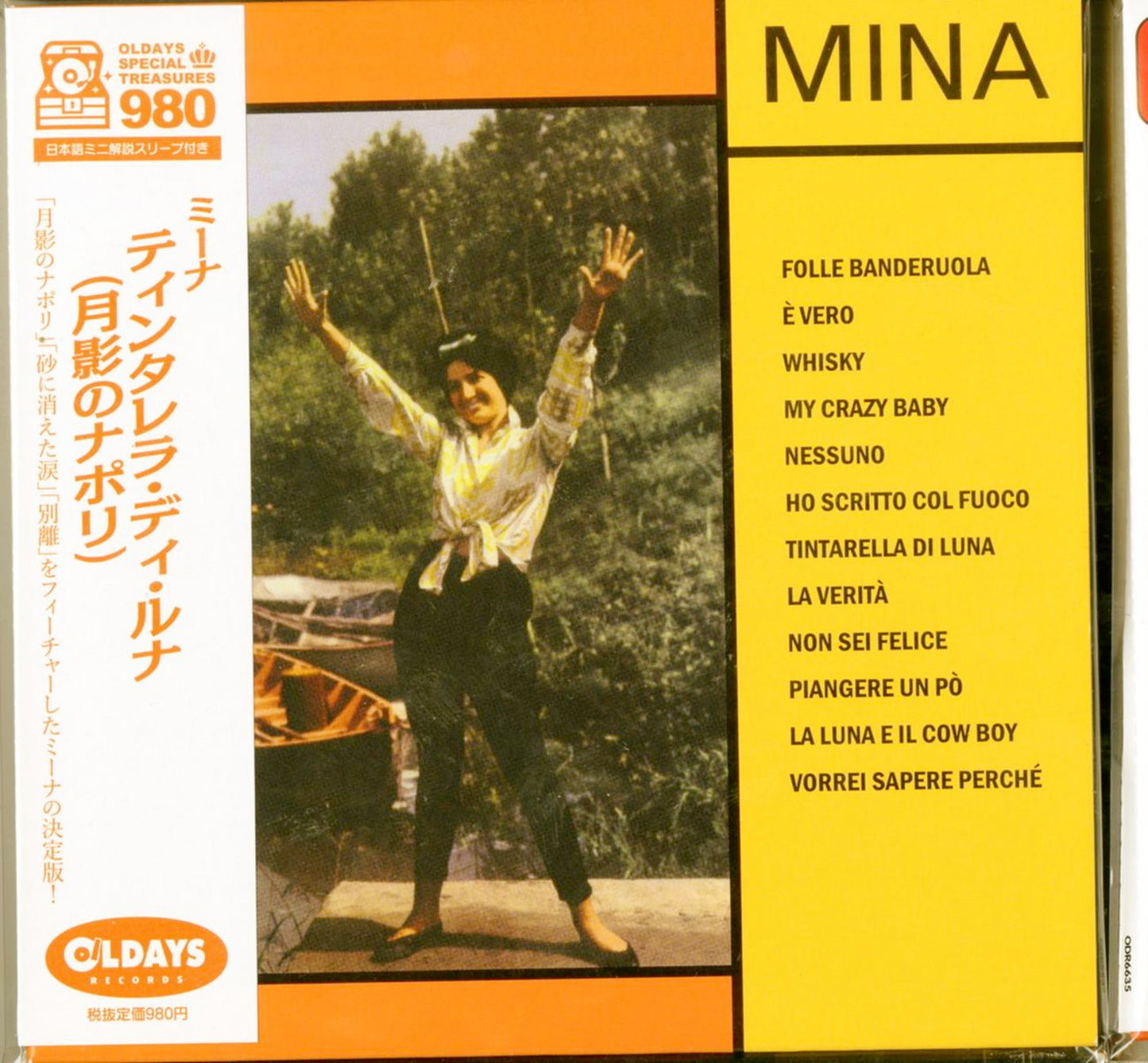 <A new series of special price of "OLDAYS SPECIAL TREASURES 980" from All Days Records! A variety of maniacal treasures, including many titles that have never been released on CD in Japan, are now available in paper jackets and with Japanese mini commentaries for 980 plus tax! The first album (1960) by Meena, an Italian female singer who became very popular during the Japanese pop music era in the 1960s. The title track, "Napoli in the Shadow of the Moon," which was a big hit in its Japanese version sung by Kayoko Moriyama and The Peanuts, and the song "The Leopard of Cremona," which earned her the nickname "The Leopard of Cremona," are just a few of the songs that showcase her unique voice with a strong presence. The bonus tracks include five songs, including the Italian versions of "Tears Gone in the Sand" and "Separation," which Mina herself sang in Japanese and which became a hot topic.