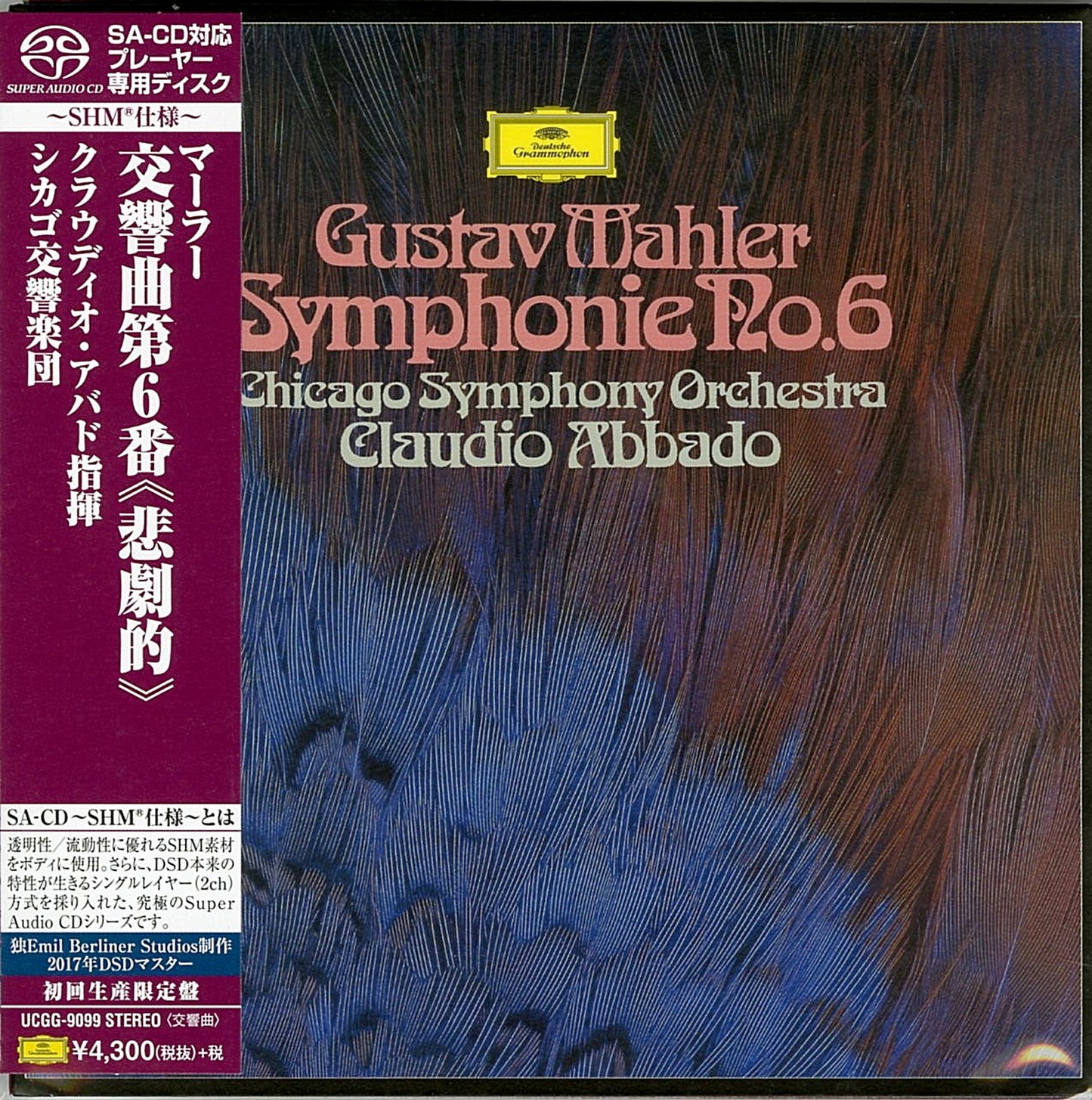 I can see the sound! It moves! The world first heard another dimension of quality, SA-CD - SHM specification. The body is made of SHM material with excellent transparency and fluidity. The ultimate Super Audio CD series, which employs the single-layer (2ch) method that brings out the true characteristics of DSD. This disc is exclusively for SA-CD compatible players. It is a disc for SA-CD compatible players only, and cannot be played on ordinary CD players. ■The Symphony No. 6 with the Chicago Symphony Orchestra from the first Mahler Zycles by Claudio Abbado is now available in SA-CD to SHM format. Abbado's clear interpretation of the work and the Chicago Symphony Orchestra's powerful and penetrating sound resonate with each other, presenting listeners with a clear perspective on the complex structure of this difficult work. The latest DSD master was produced in 2017 at Emil Berliner Studios in Germany from the original Deutsche Grammophon analog master. Japan exclusive project. Paper jacket edition. Recorded February 16, 1980 at Orchestra Hall, Chicago [Performed by] Claudio Abbado, Chicago Symphony Orchestra