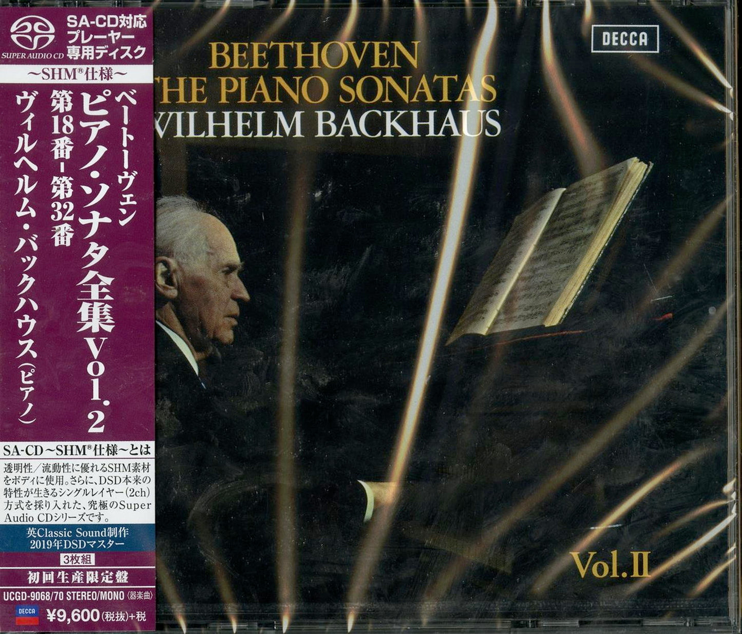 Commemorating the 50th anniversary of Backhaus' death and Decca's 90th anniversary. The second collection of Beethoven piano sonatas recorded by German pianist Wilhelm Backhaus in his later years has been DSD remastered and released on SA-CD for the first time this year, 50 years after his death (only No. 29 was recorded in mono the first time). Backhaus's Beethoven Sonatas are still heard around the world as standard performances, even 50 years after their recording. The large capacity of the SA-CD format has been utilized to record the equivalent of eight CDs on six discs, and the two 3-CD sets are now available. We hope you will enjoy this newly remastered and revived performance. This is a Japan-exclusive project.